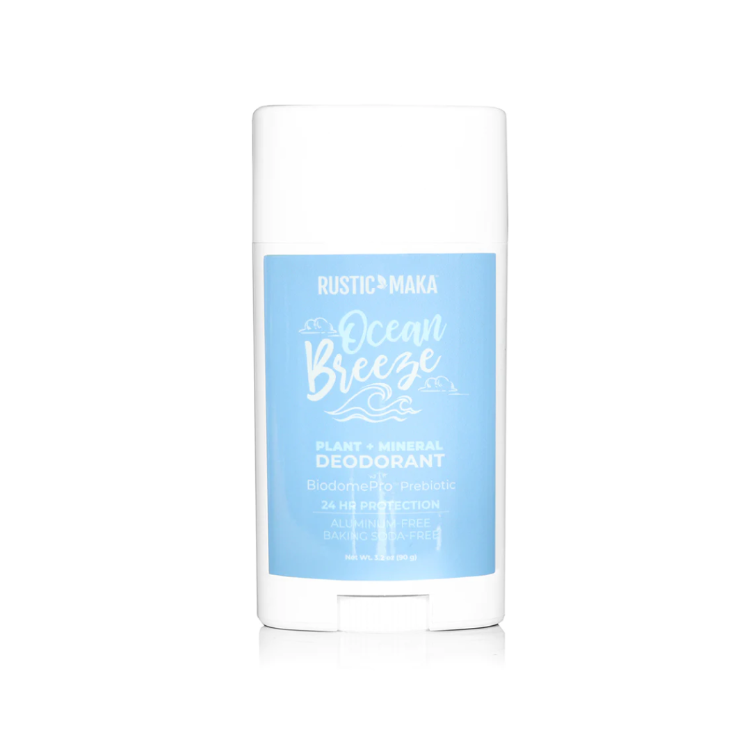 The Rustic Maka Ocean Breeze Deodorant is formulated with a unique BiodomeProβ’ prebiotic blend to balance and nourish skinβs delicate microbiome. CITRUS + CEDAR + OAKMOSS