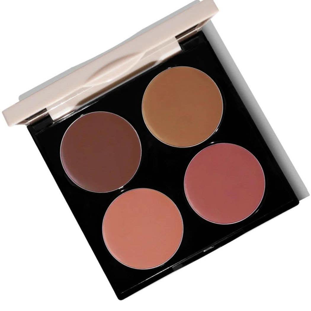 Buffed Glow Palette: Buff Petal (soft pink brown), Bronzed Clay (golden terracotta cream), Rosewood (muted berry cream), and Aubergine (sheer brown plum)Β