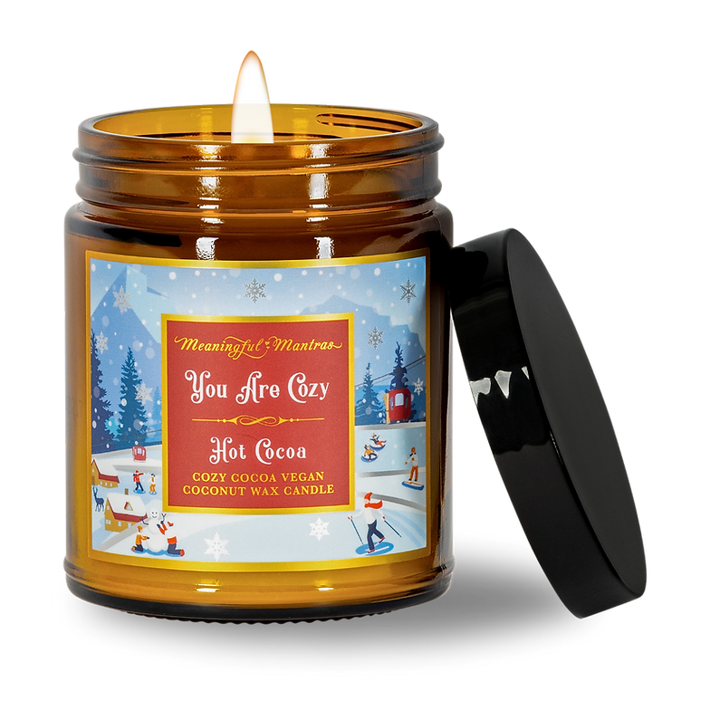 This cozy, vegan hot cocoa candle is the perfect scent for the holidays. Formulated with Cocoa Absolute (Cacao), Clove and Coffee extracts & essential oils, it can help create feelings of contentment and can be revitalizing and comforting. Coffea Arabica (Coffee) adds a uplifting and energizing aroma. This clean-burning candle is crafted with toxin-free coconut wax and comes in a 3" x 3" x 3.5" jar with 40 hours of burn time.